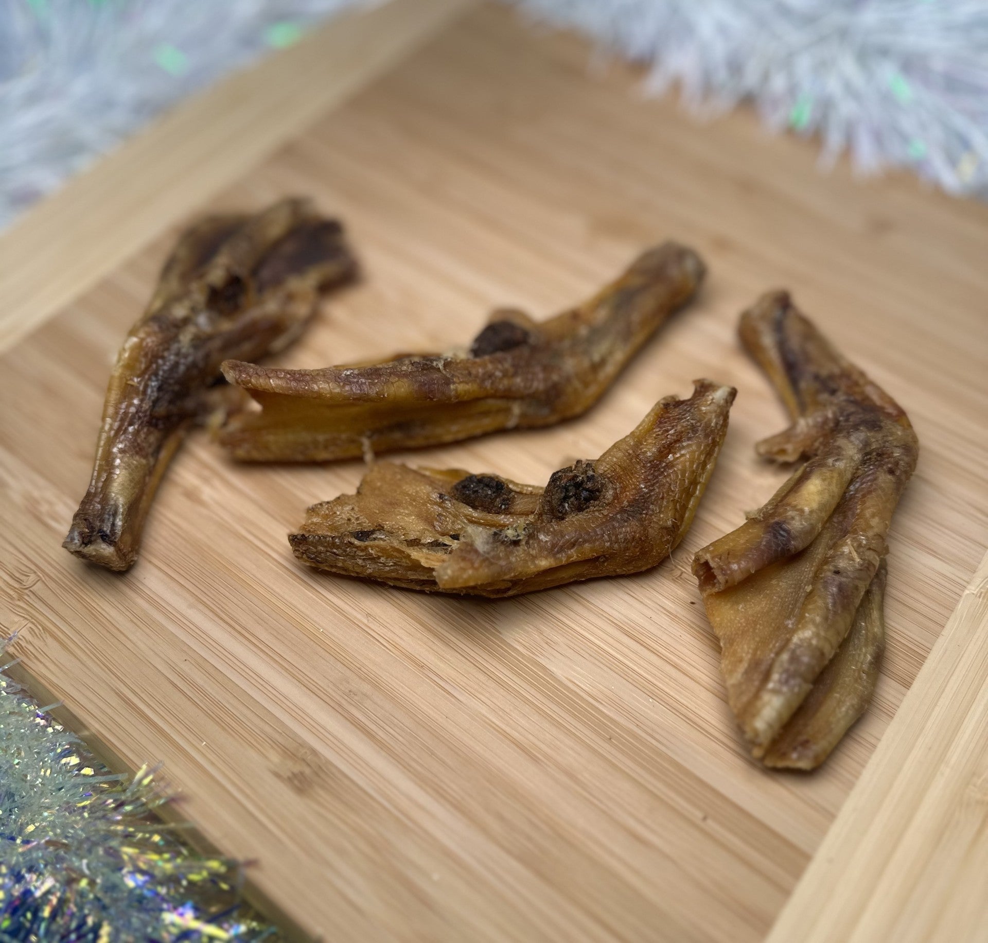 Our scrumptious duck feet are natural treats, high in chondroitin which aids joint health. They make great dental chews for small dogs and are a crunch snack for larger dogs! These dehydrated treats are a big hit with our canine customers.