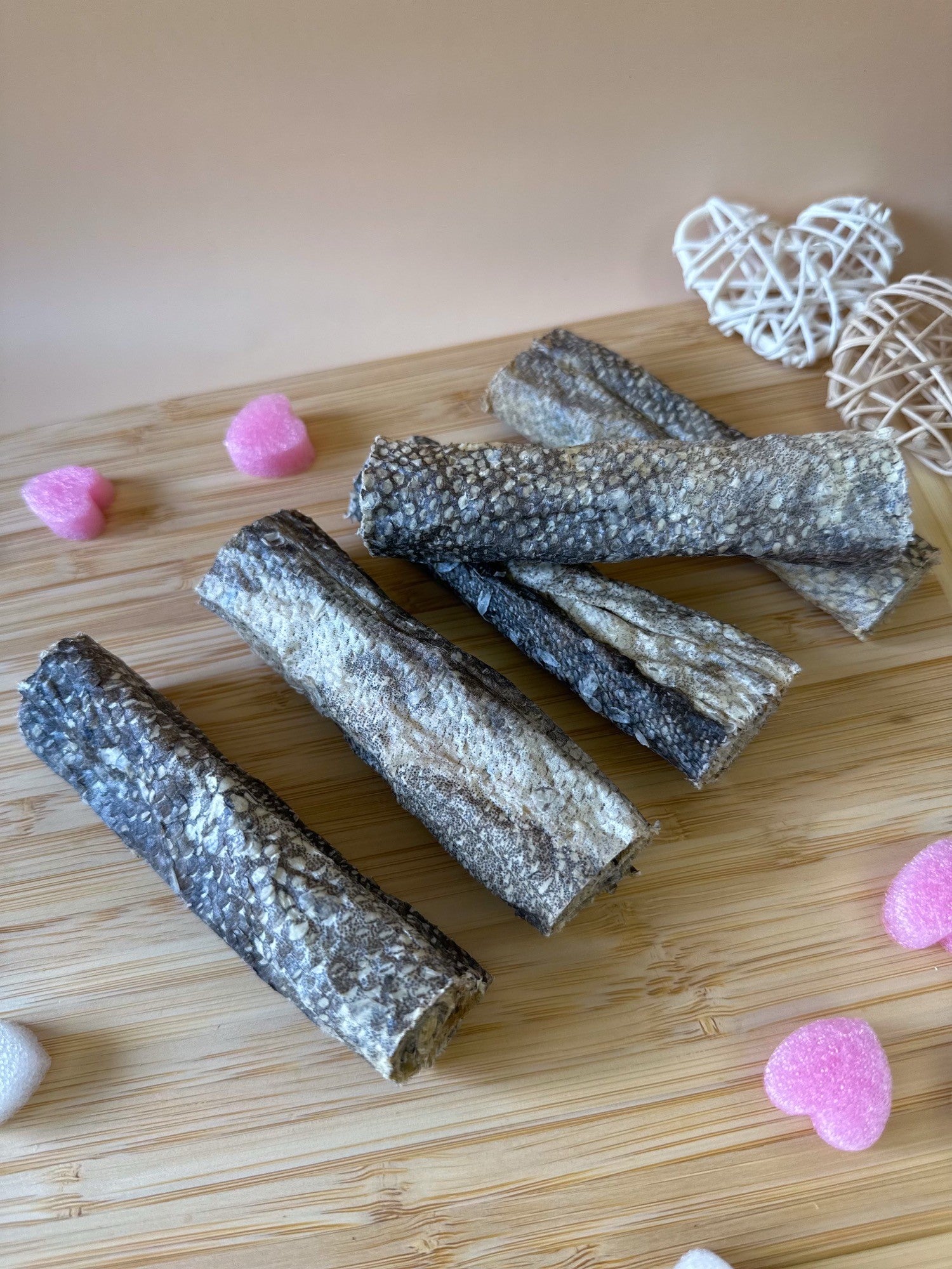Treat your furry friends to the irresistible taste and health benefits of our Fish Skin Rolls. With their natural goodness and satisfying crunch, these treats are sure to become your dog's new favourite snack. Make your dog's tail wag with joy by providing them with a snack that is both delicious and nourishing!