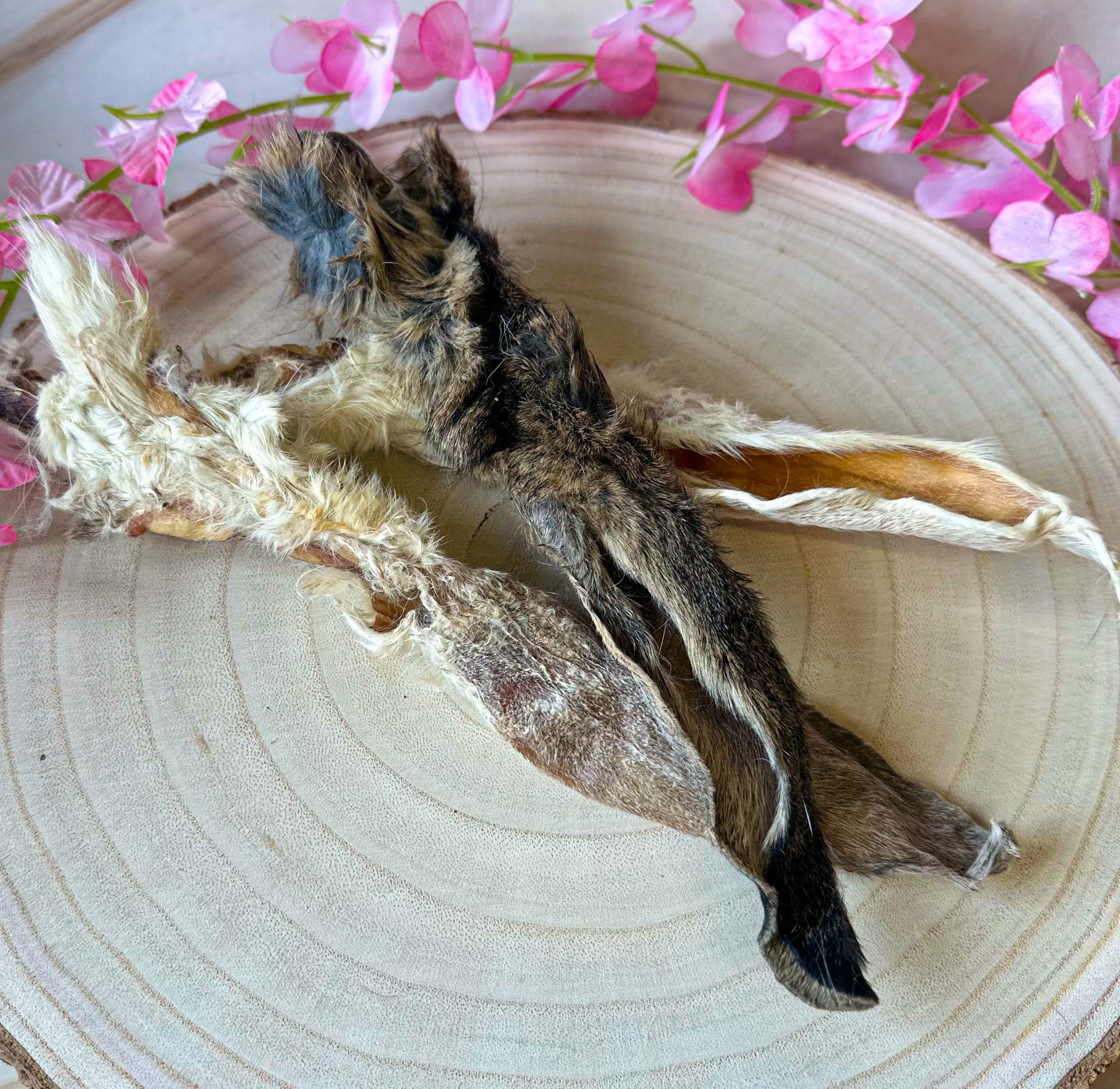 Our Hairy Rabbit Ears are a fantastic chew alternative to pigs and cows ears, especially for our smaller dogs! The addition of the fur is a good source of fibre and helps reduce parasites from the gut naturally!