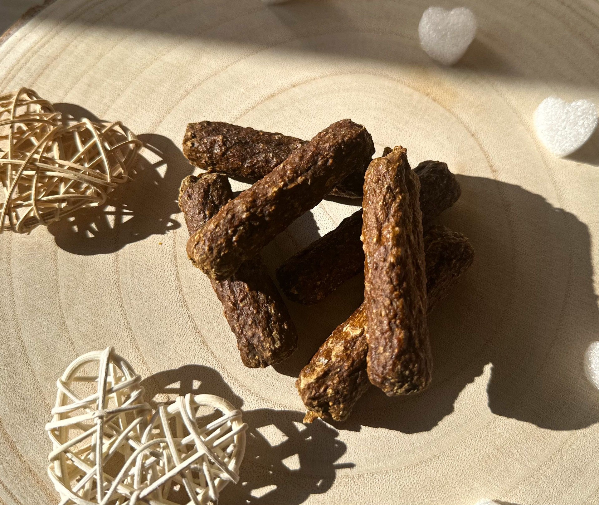 Our Gourmet Sausages are not only delicious but they’re healthy too! Ideal for dogs of all breeds and sizes, they’re also perfect as training treats for dogs with allergies, digestive issues or a sensitive stomach.